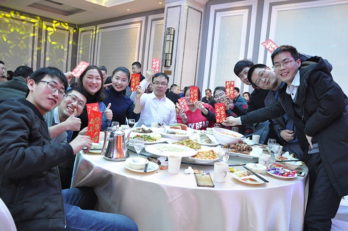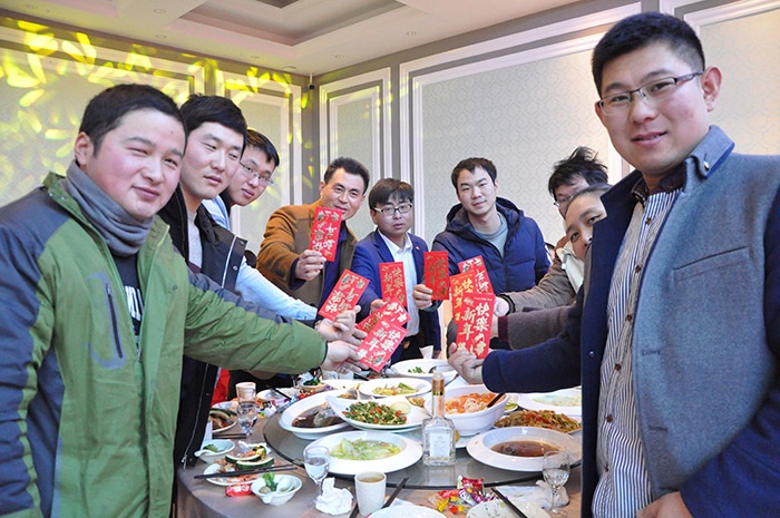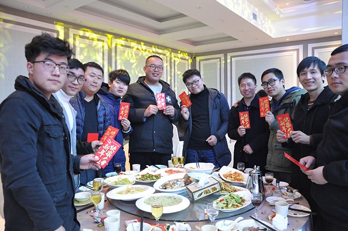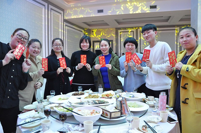 (董事長為(wéi)集團家人們一一送達新春祝福並發放(fàng)紅包)